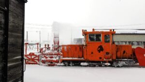 ホームに降りると、すぐ横で除雪車両が雪をかき分けて作業していました。