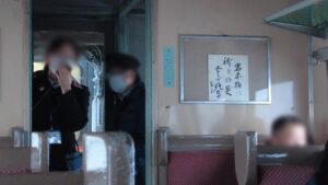 このとき電車内は、観光客の方も多く結構混んでいて、座席に座れずに立ったままの人もいらっしゃいました。